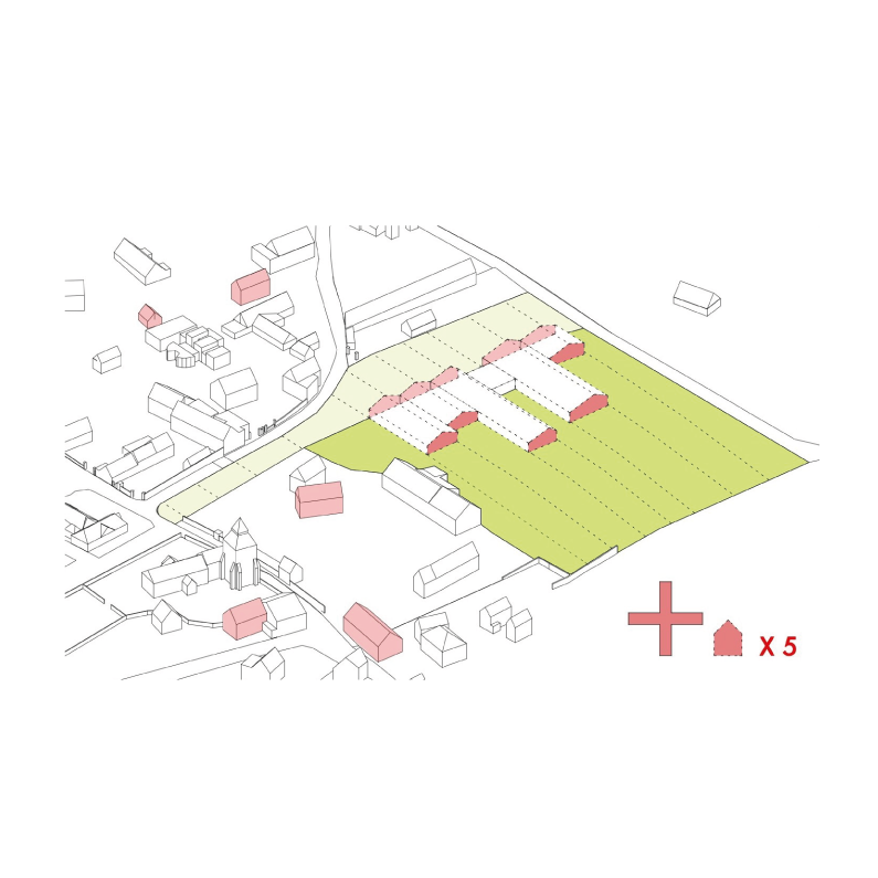Dans un site remarquable dont la toile de fond est constituée des coteaux de la vallée de la Seine, cette nouvelle école est accrochée au village normand d’Heudebouville (Eure). Un paysage de bocage De l’histoire du lieu, l’école emprunte les matériaux et la morphologie : le bois des colombages des maisons du centre-ville pour les châssis vitrés et la charpente ; l’ardoise du clocher et de la mairie pour revêtir et protéger les façades et la toiture. La morphologie des maisons et des bâtiments agricoles présents sur le site est réinterprétée, donnant naissance à de grandes longères contemporaines. La géographie du site ordonne l’implantation de l’ouvrage, les maisonnées insérées selon les courbes de niveau du terrain et respectent le sol naturel. Ces lignes directrices délimitent les cours de récréation, dessinent des vergers et deviennent des noues récupérant l’eau de pluie de l’ensemble du site pour nourrir un bassin paysager en contre-bas. Anticiper le futur Cette organisation en strates anticipe la croissance envisagée du village et l’extension future de l’école, chaque maisonnée ayant la possibilité de s’agrandir. Tout en respectant le schéma d’origine, des classes peuvent être ajoutées, la restauration, les préaux et les cours peuvent s’étendre et l’équipement accueillir des élèves et usagers plus nombreux. À cet égard, les réseaux et les systèmes de sécurité incendie intègrent déjà cette possible croissance. Le système structurel en portiques, par l’absence totale de point porteur intermédiaire, permet cette évolution future et une modularité complète des locaux. Les façades et la toiture sont constituées de modules préassemblés hors site, associant étanchéité Air/ Eau, isolant et structure. Les pièces de 5x2 m, développées en 3D avec le charpentier, ont permis de maîtriser les délais de chantier. Empreinte carbone La construction de l’école s’inscrit dans une démarche de réduction de son empreinte carbone. L’usage du bois, de l’ardoise, l’intégration de panneaux photovoltaïques et l’absence de consommation d’énergie fossile pour le chauffage de l’équipement permettent d’atteindre les ambitieux niveaux E3C2 et BEPOS. Enfin, le chantier a été entièrement réalisé avec des matériaux locaux et des entreprises implantées dans la région.