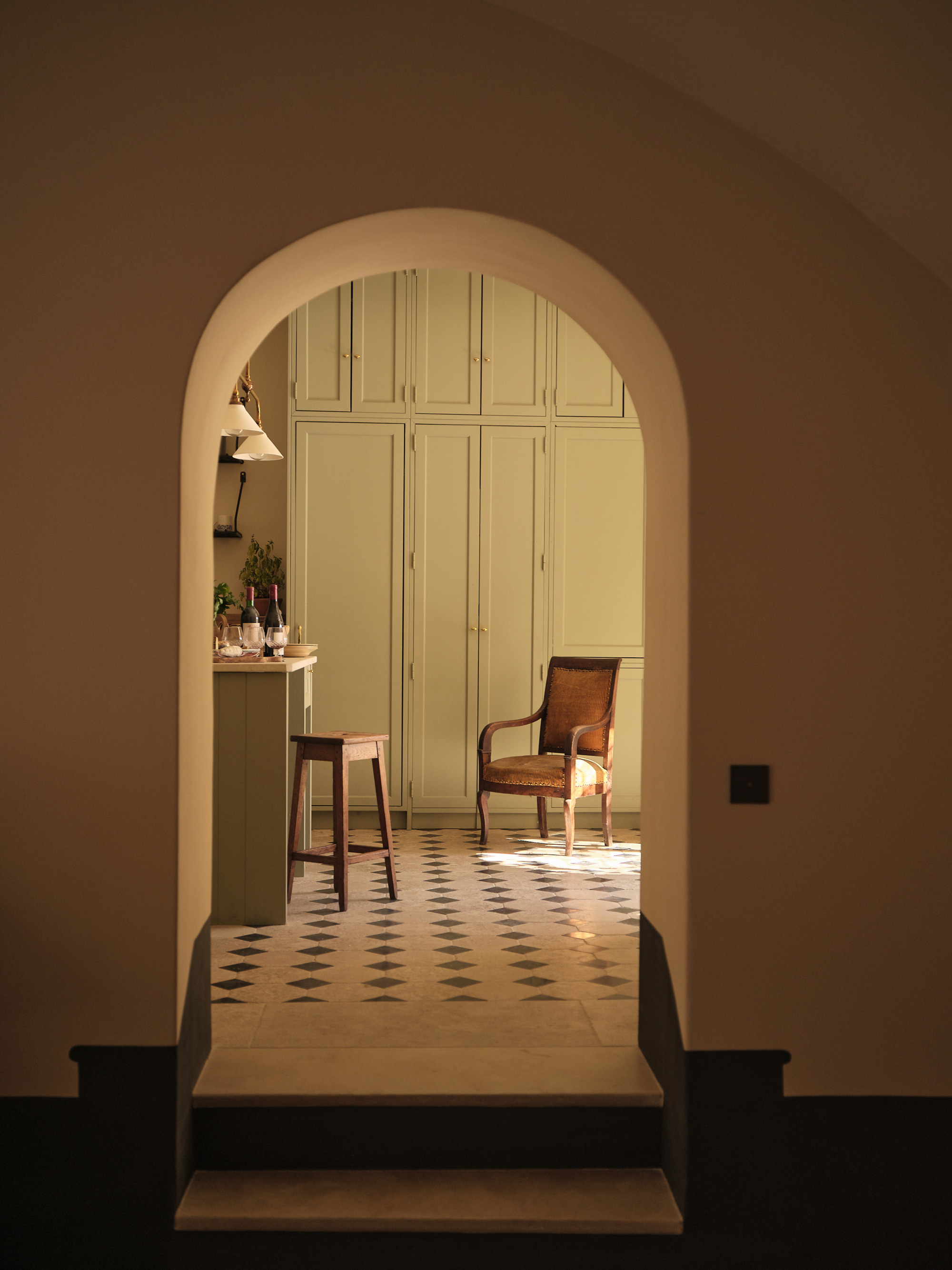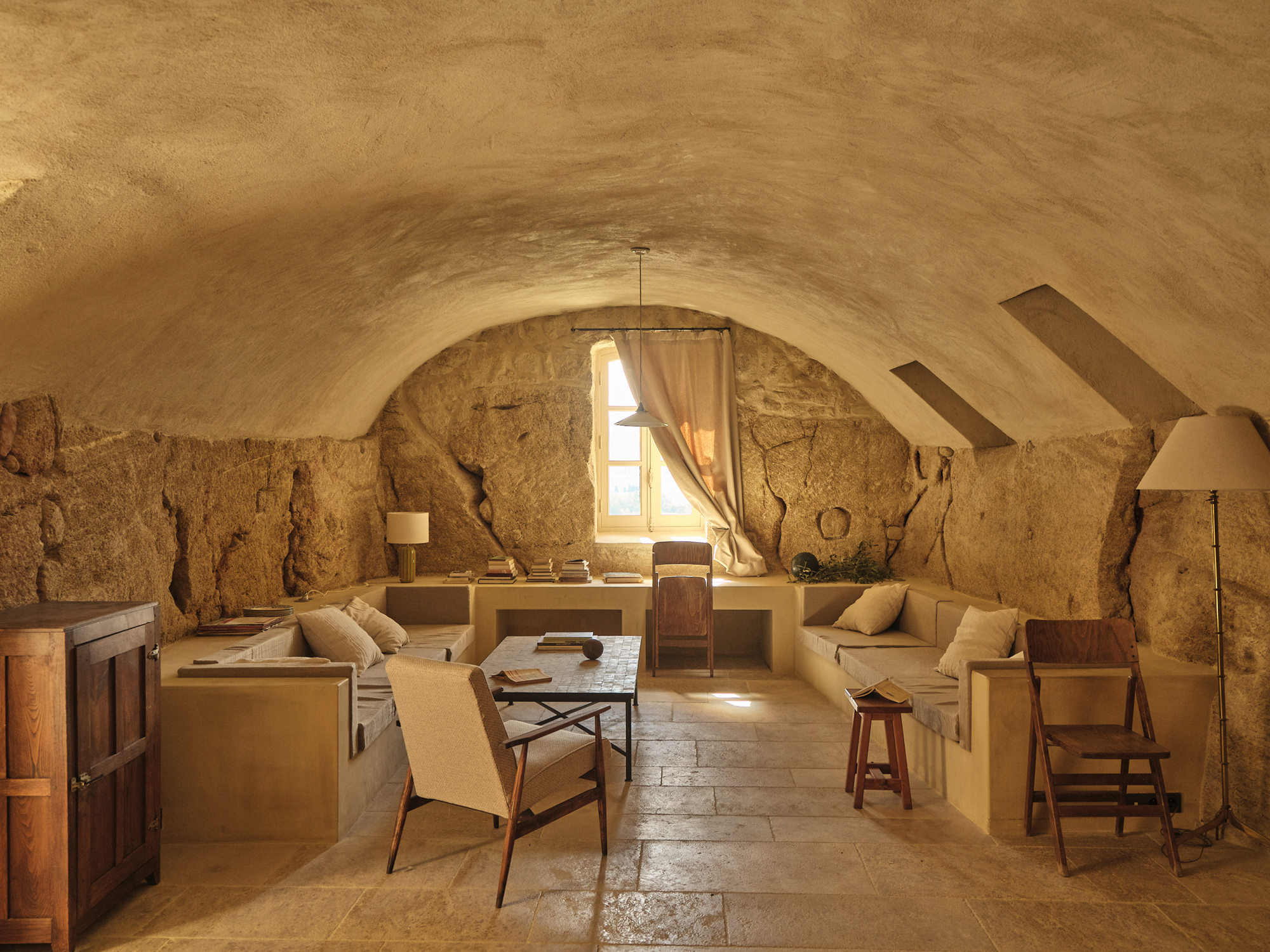 La Maison de Garde est un bâtiment du village datant du XVIIe siècle, édifié avec des matériaux provenant du site, notamment la pierre calcaire burdigalienne — formée par la collision des Alpes et des Pyrénées en fournissant un matériau solide mais facile à travailler. La maison se compose de quatre niveaux, dont un souterrain, découvert lors des recherches archéologiques. Ce niveau abritait un ancien pressoir, réutilisé comme bain, ainsi qu’unve citerne antique que nous avons restaurée et reliée au système de récupération des eaux pluviales du toit et aux pièces chauffées. Ce dispositif permet désormais à la maison de bénéficier d’une climatisation naturelle. Les ajouts du XXe siècle, qui avaient compromis l’intégrité historique du bâtiment, ont été soigneusement déconstruits, avec la préservation de tous les matériaux réutilisables, qui ont ensuite été utilisés pour la restauration. De plus, une carrière a été ouverte dans la petite cour de la maison pour extraire les 40 m³ de pierres de taille nécessaires à la construction de la nouvelle extension du rez-de-chaussée.