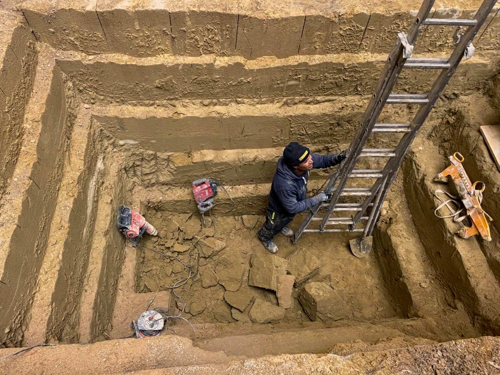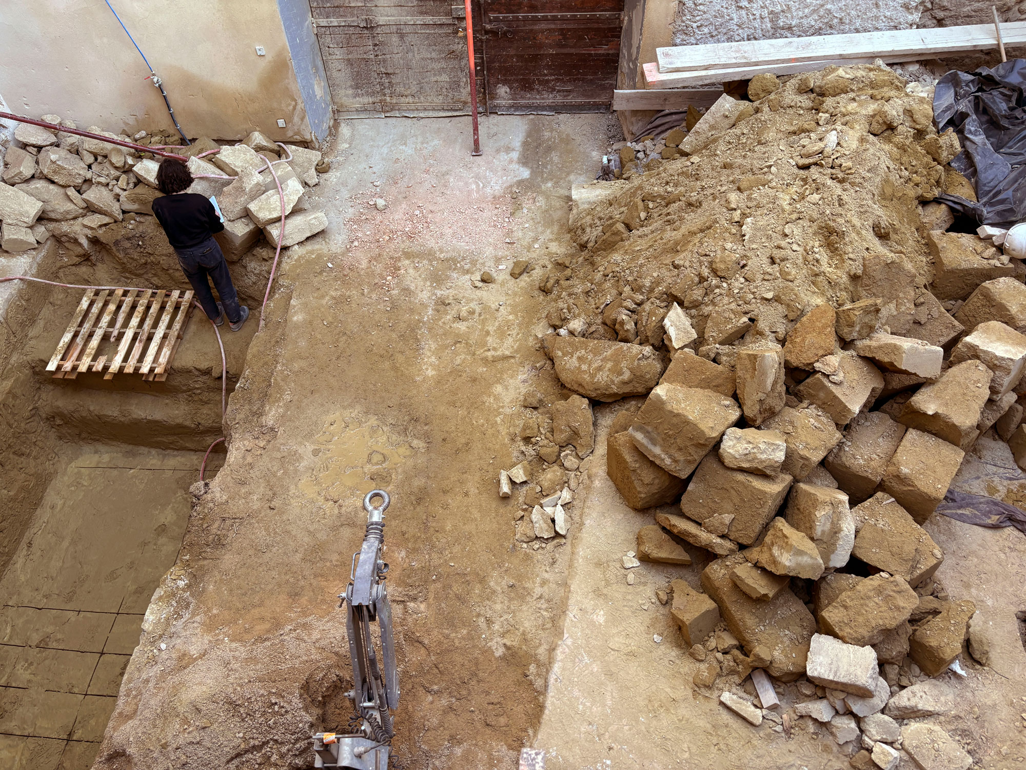 Une carrière a été ouverte dans la petite cour de la maison pour extraire les 40 m³ de pierres de taille nécessaires à la construction de la nouvelle extension du rez-de-chaussée.